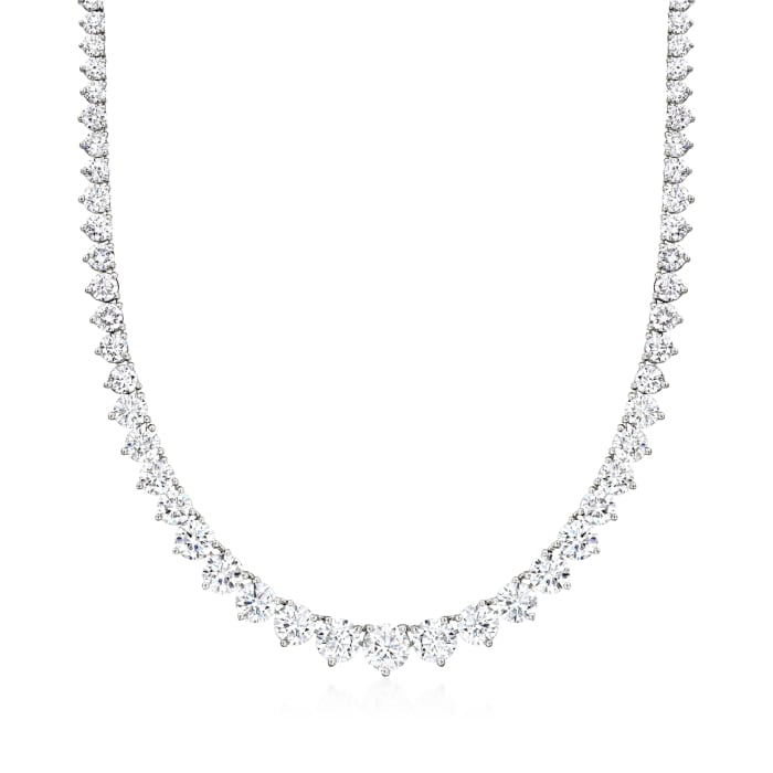 This exquisite necklace features a continuous line of brilliant round diamonds, totaling an impressive 14.47 carats. Each diamond is securely held in a three-prong setting, allowing for maximum visibility and showcasing the diamonds' fire and brilliance. The three-prong setting adds a touch of elegance and sophistication to the design.