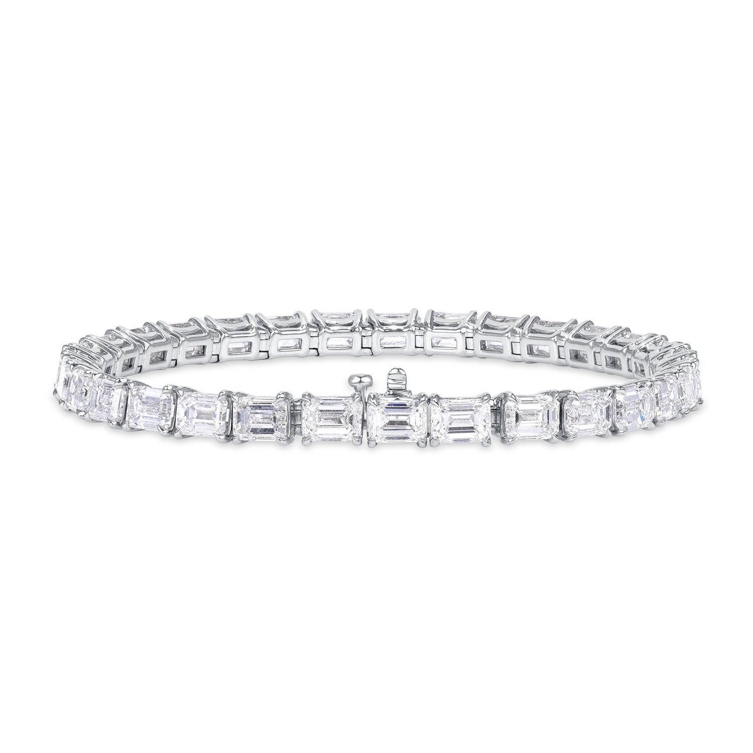 What sets this bracelet apart is its unique design, where each diamond is set horizontally, alternating between facing east and west. This innovative orientation creates a dynamic and eye-catching pattern that adds a contemporary twist to the timeless tennis bracelet style.
