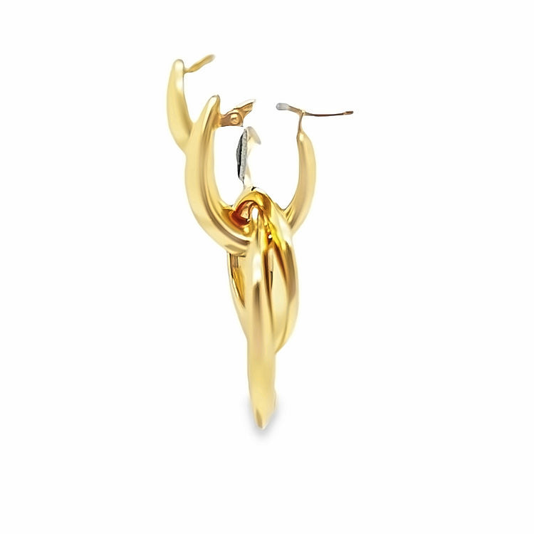 The 18KT Gold Convertible Earrings are a versatile and elegant accessory designed to effortlessly transition from day to night. Crafted from 18KT gold, these earrings feature a hollow construction, making them light and easy to wear. What sets these earrings apart is their convertible design, offering three different ways to wear them.