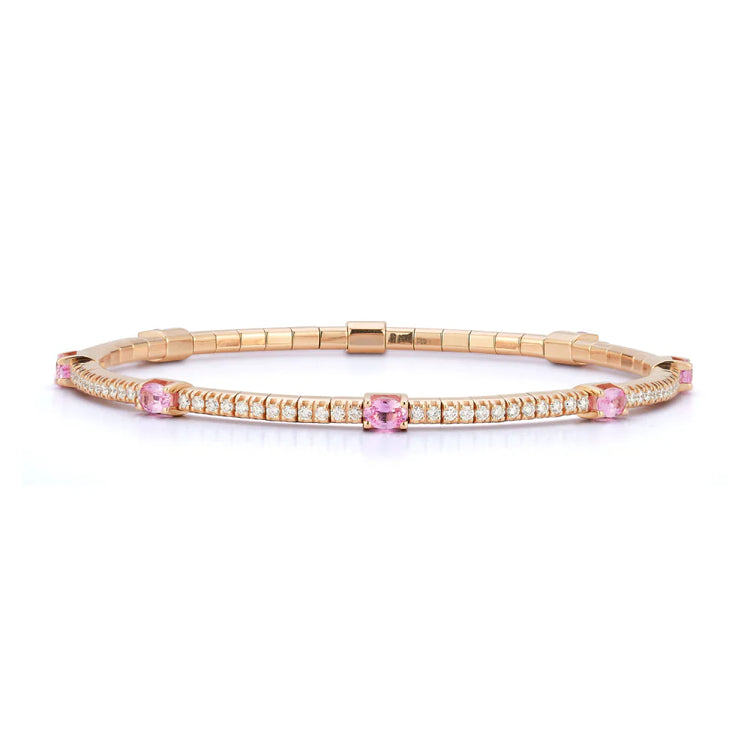2.45CT Pink Sapphires and White Diamond Stretch Tennis Bracelet