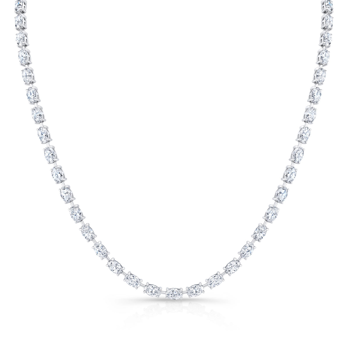 This necklace is a masterpiece, adorned with a total of 60 GIA certified oval-cut diamonds, each weighing 0.38 carats, and boasting a remarkable total carat weight of 22.76 carats. The oval cut is known for its brilliance and elongated shape, adding a touch of sophistication to each diamond.