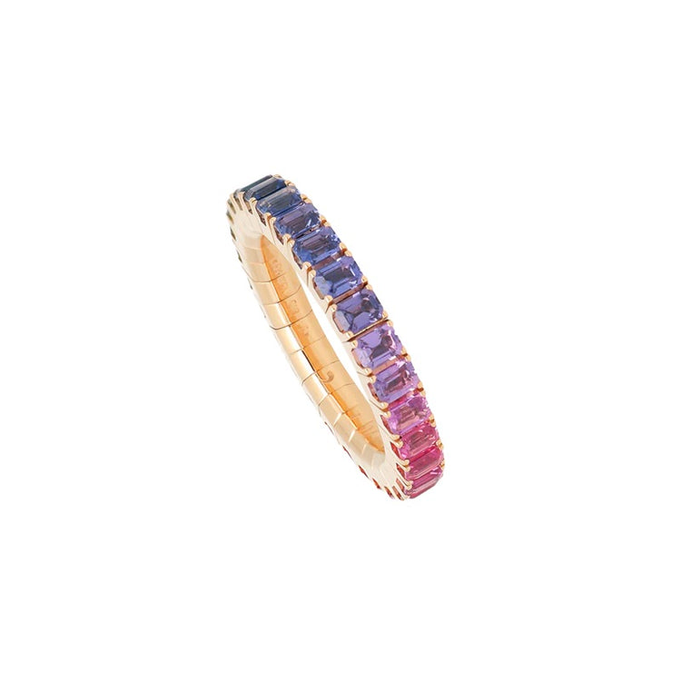 3.72CT Rainbow Emerald Cut Sapphire Eternity Stretch Ring