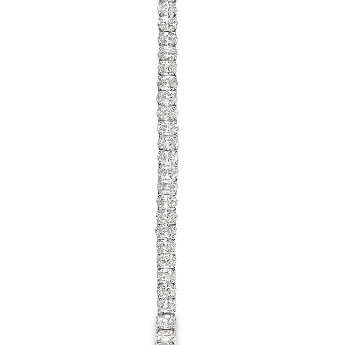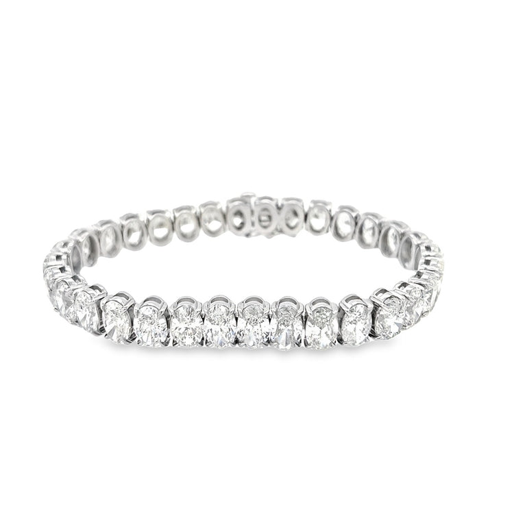 This exquisite bracelet features a breathtaking array of 32 oval-cut diamonds, totaling an impressive 33.16 carats, meticulously arranged to create a mesmerizing display of brilliance and elegance. Set in lustrous 18KT white gold, the diamonds are securely held in place while allowing maximum light to pass through.