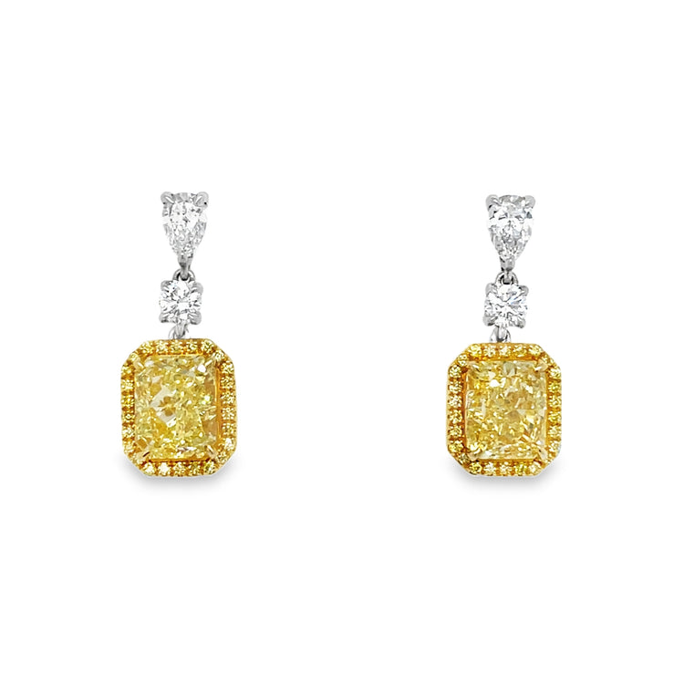 4CT Radiant Cut Fancy Intense Yellow Diamond Earrings