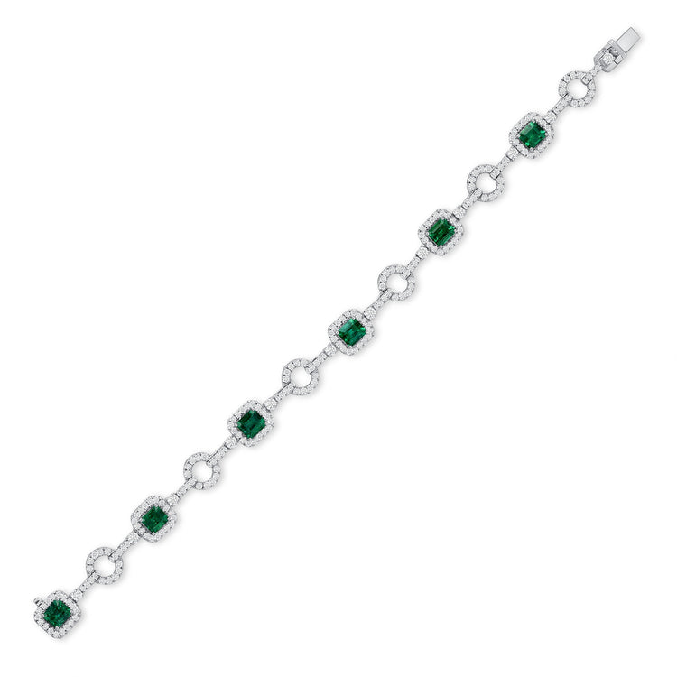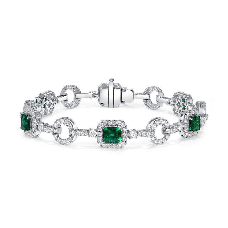 Every other link features a stunning emerald cut emerald, and GRS certified for authenticity. Accented by 226 brilliant round natural white diamonds, this bracelet is the epitome of sophistication and exclusivity.