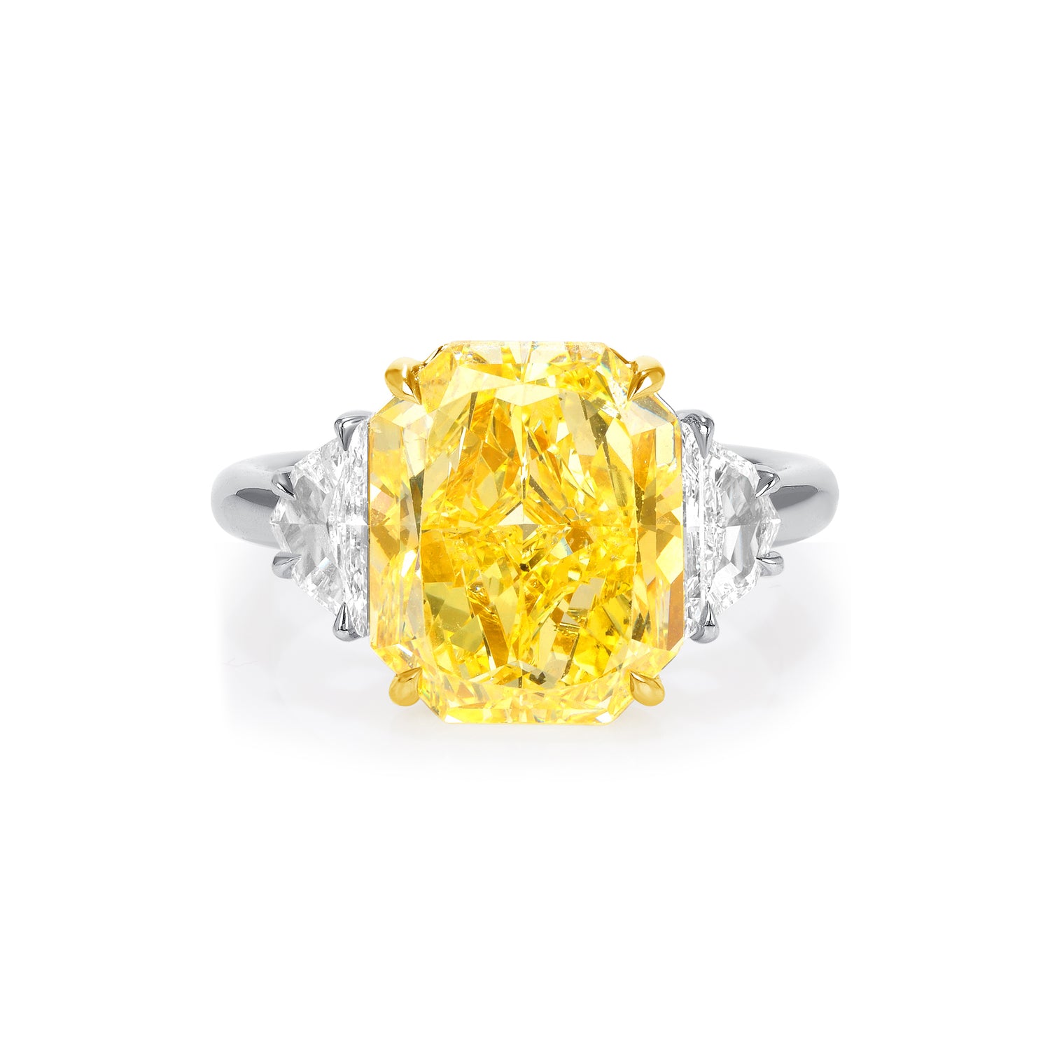 7CT Fancy Intense Yellow Radiant Cut Diamond Ring