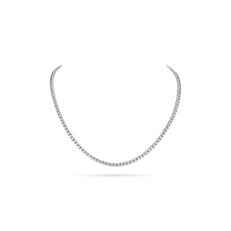 The meticulously set diamonds create a continuous band of sparkle that gracefully drapes around the neckline, emanating a captivating and enchanting brilliance.