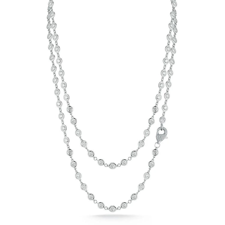156 round diamonds, in polished white gold, catch the light for ultimate shimmer. A perfect style for layering, this classic necklace is a must-have accessory for your jewelry collection.
