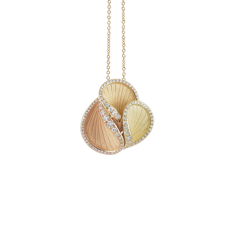 The Annamaria Cammilli Diamond Musa Pendant in 18K gold showcases a graceful design, embellished with white diamonds. This pendant captures the essence of refined elegance, offering a luxurious and timeless addition to any jewelry collection.