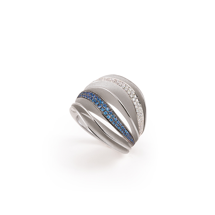 Annamaria Cammilli Six Layer Diamond and Blue Sapphire Velaa Color Ring
