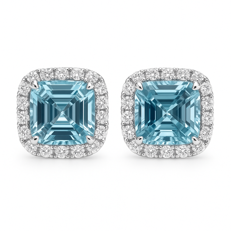 Aquamarine and Diamond Halo Stud Earrings