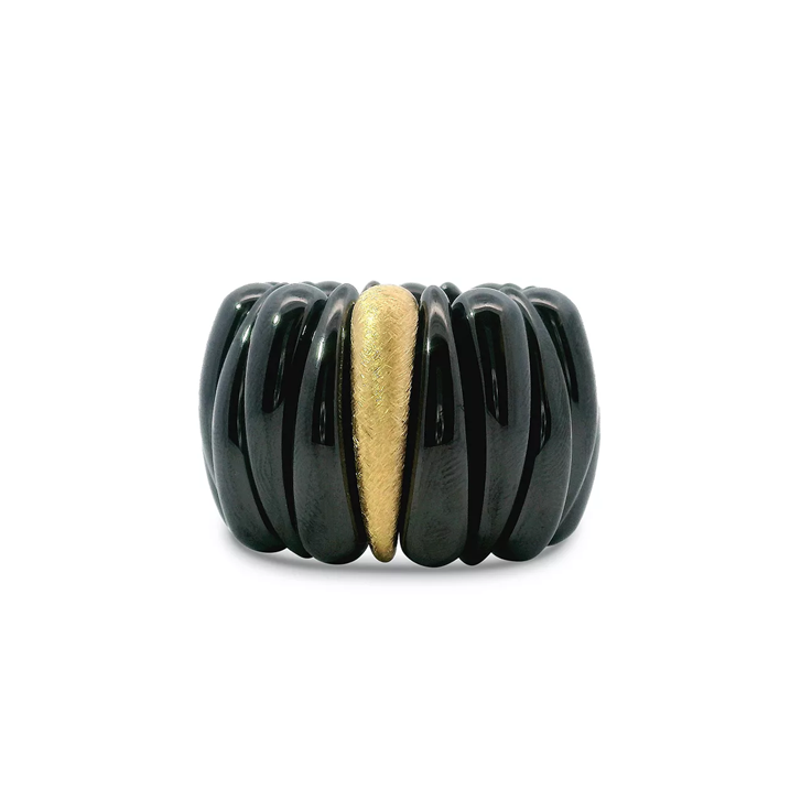 Roberto Demeglio Artiglio Black Ceramic Stretch Ring with 18KT Yellow Matte Gold Section