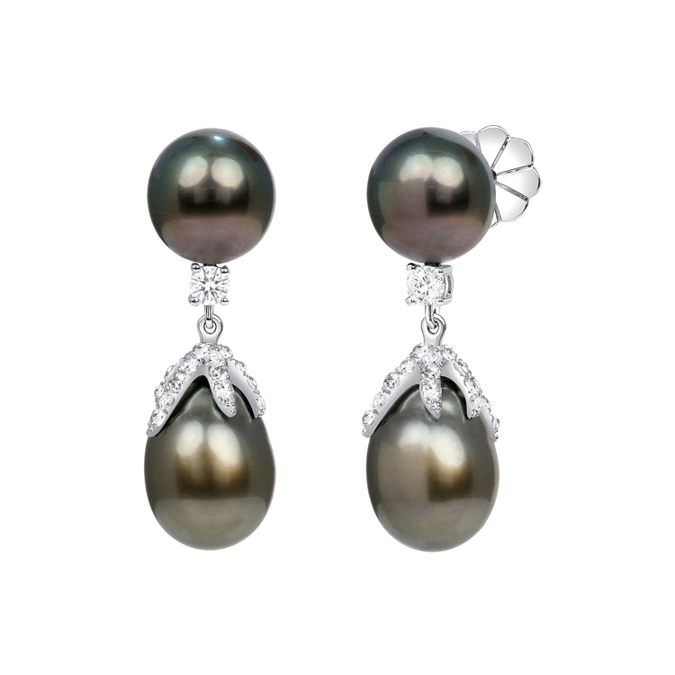 Lustrous black pearls accented with melee diamonds in an organic, starfish-motif setting showcase a breathtaking look for anyone who loves the sea.
