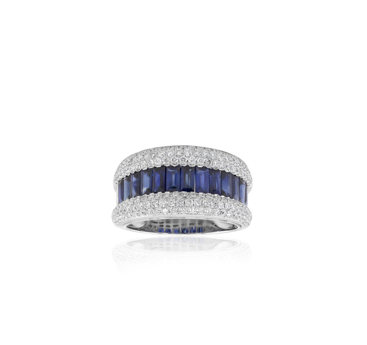 Blue Sapphire Stripe and White Diamond Ring