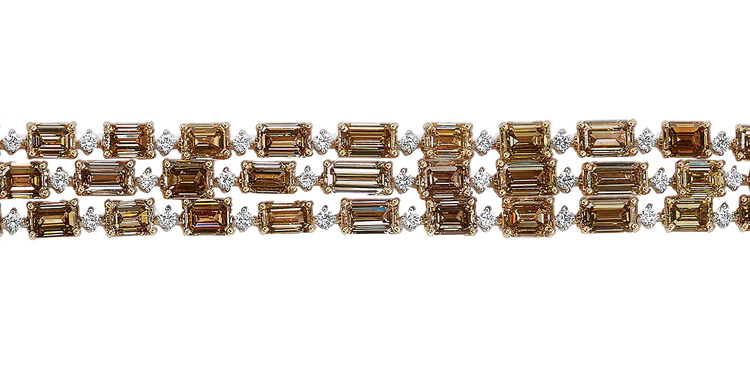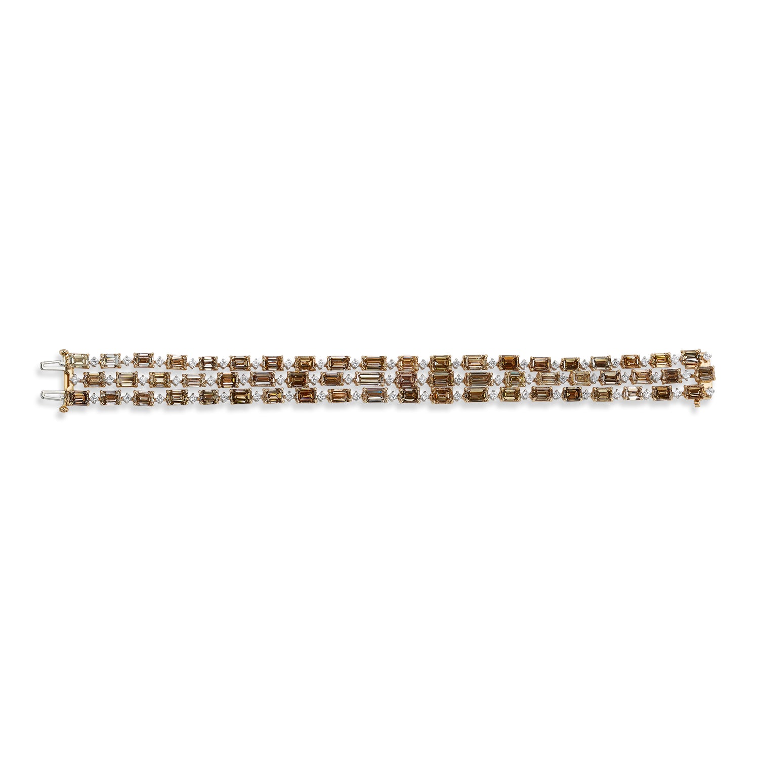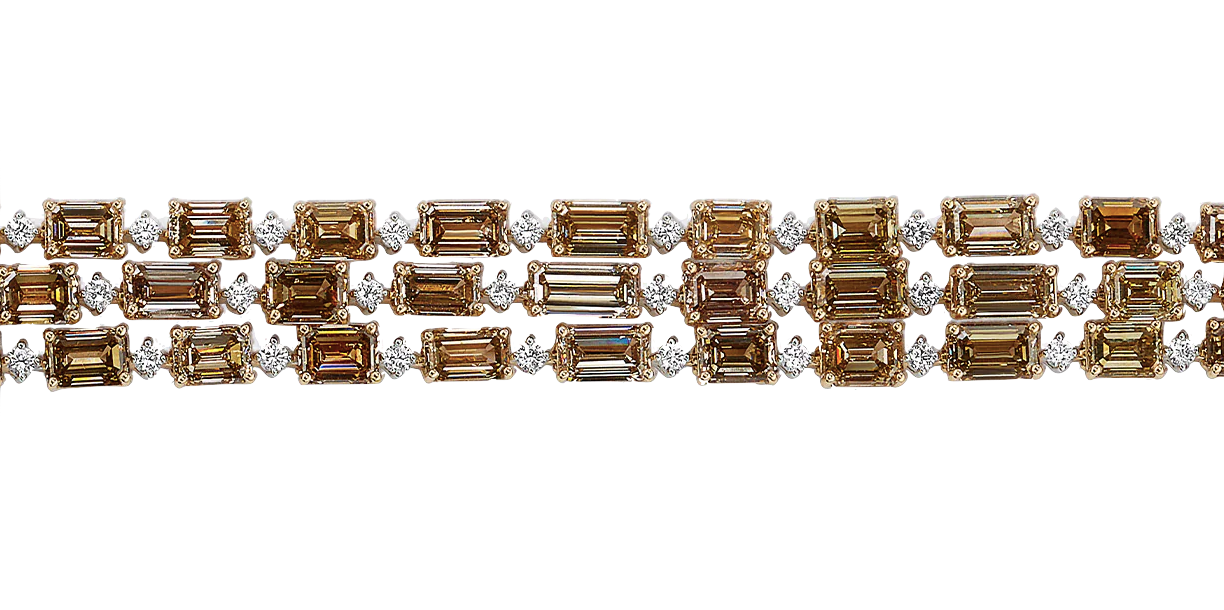 Featuring exquisite brown emerald-cut diamonds meticulously set in lustrous white and rose gold, this bracelet captivates with its timeless elegance and undeniable allure. Each diamond is carefully selected for its exceptional clarity, color, and brilliance, creating a mesmerizing symphony of light and color with every movement.