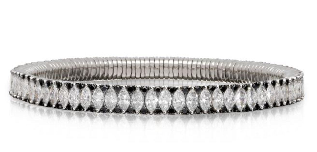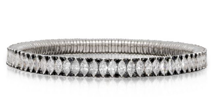 Roberto Demeglio Cashmere Marquise 2 Row White and Black Diamond Stretch Bracelet