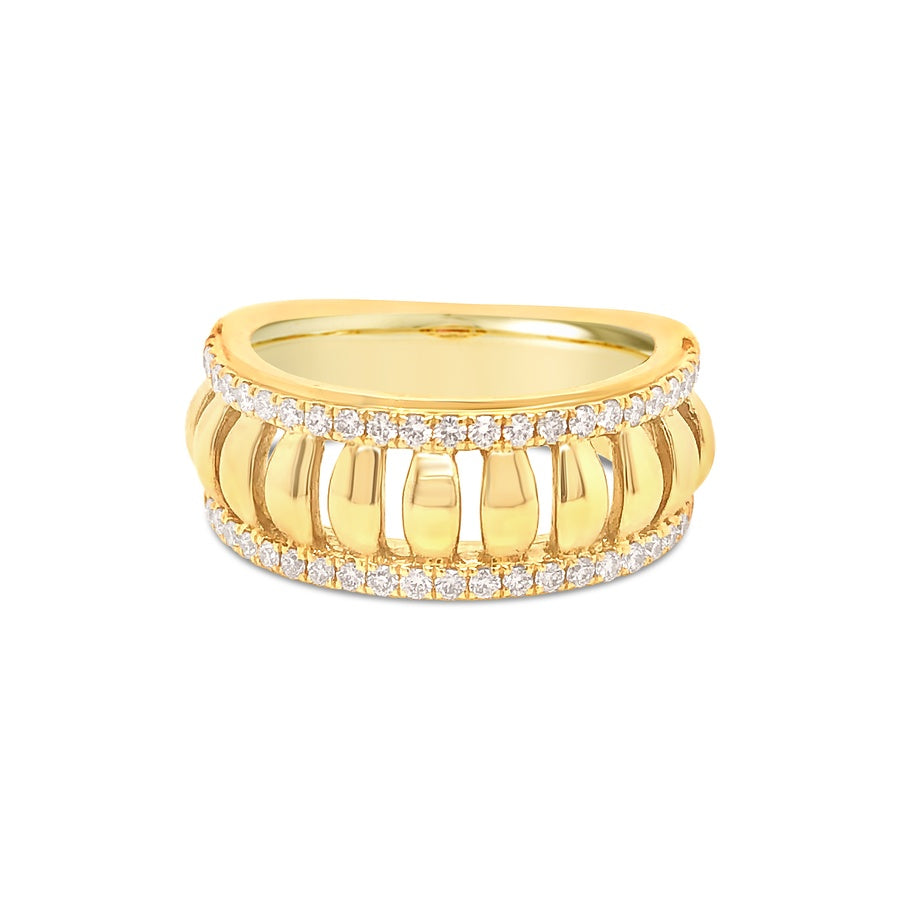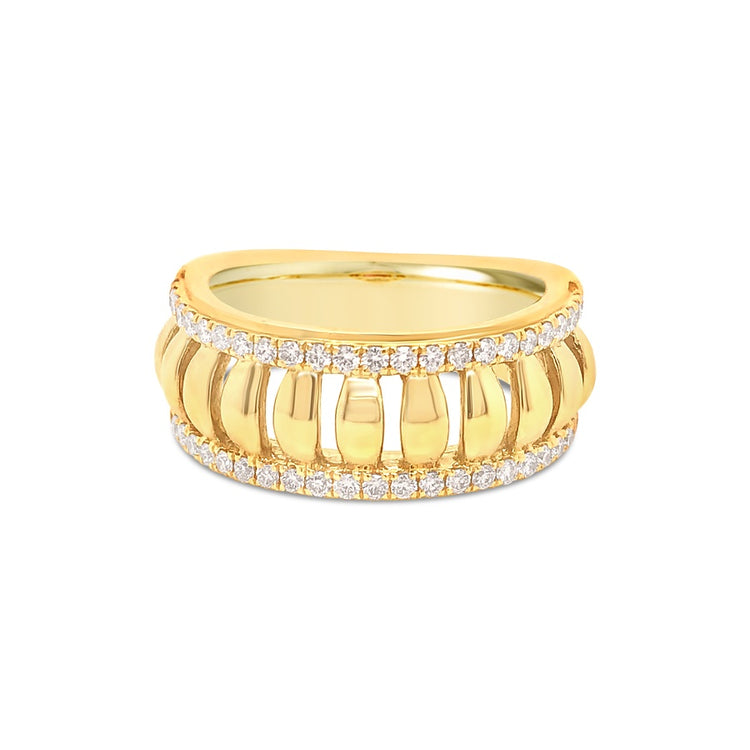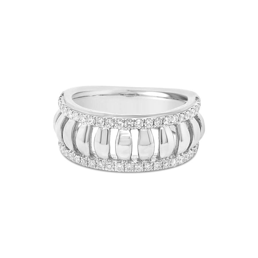 Smooth arms of polished 18k white gold connect two rows of brilliant white diamonds to create this gorgeous everyday essential.