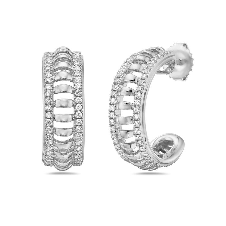 The perfect everyday essential, our birdcage huggie earrings combine smooth, polished 18k white gold with brilliant white diamonds, adding a touch of elegance to your daily look. (Small Version)