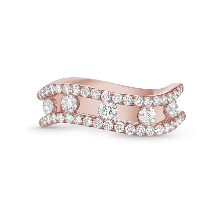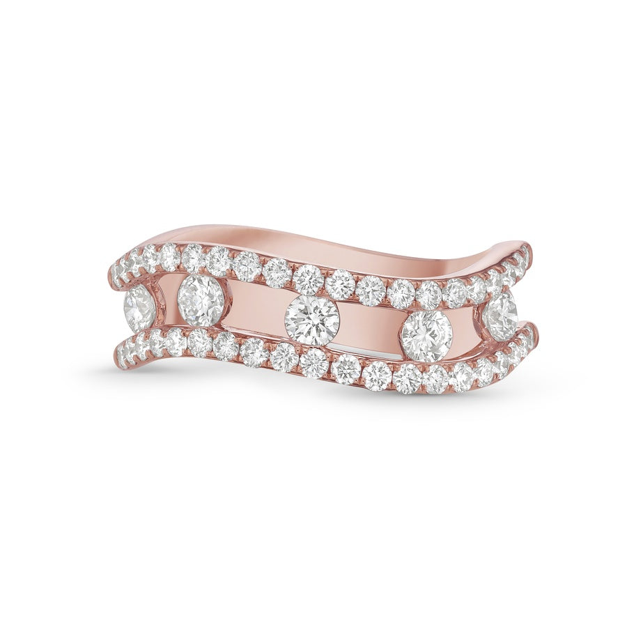 Ideal-cut white diamonds are set between walls of 18k white gold and pavé, curving gracefully to create a sense of movement.