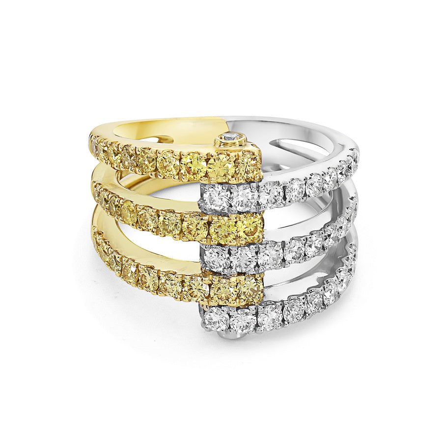 The arms of brilliant white diamonds, set in solid 18k gold, come together in a striking mechanical form, seamlessly blending radiant sparkle with intricate design to create a bold and captivating piece.