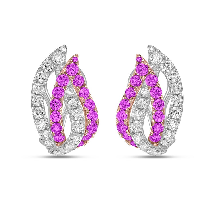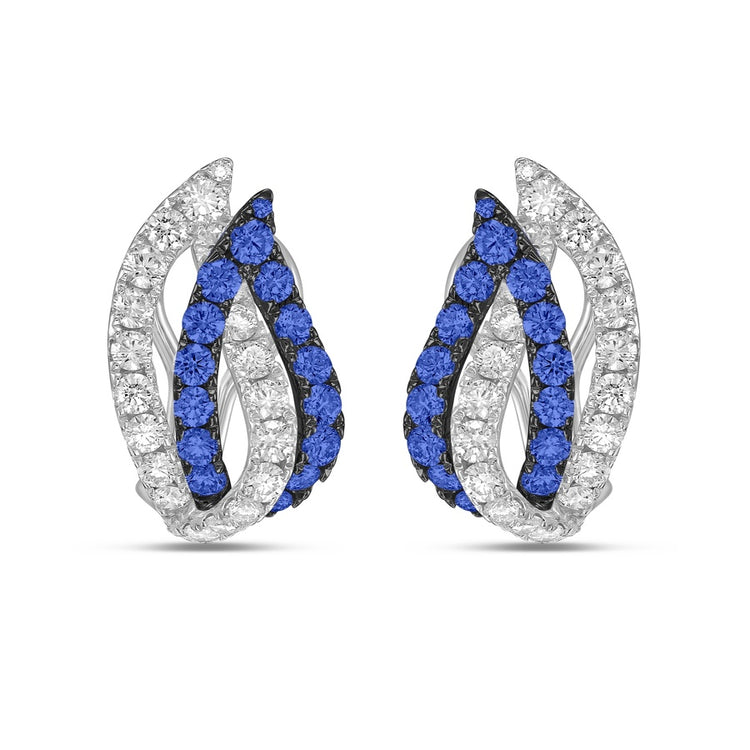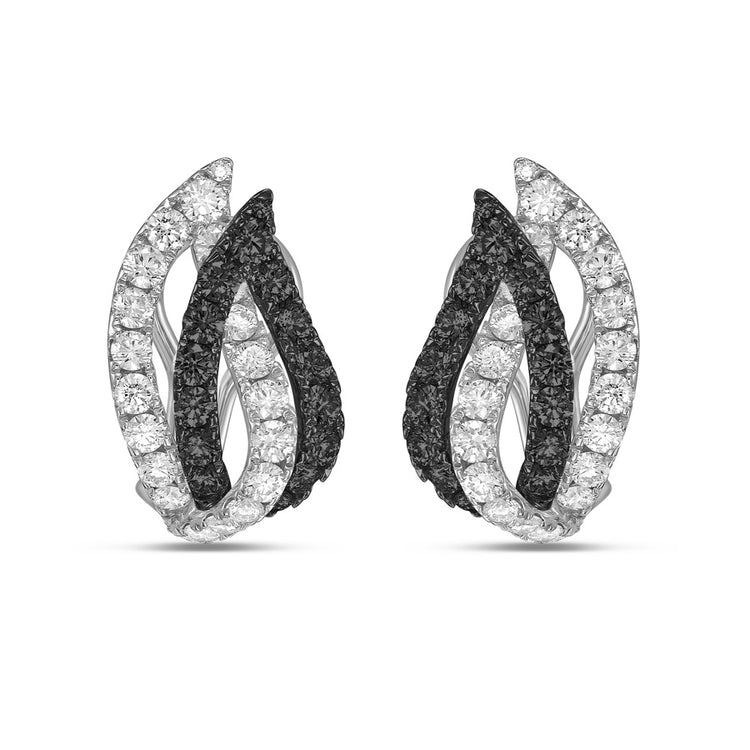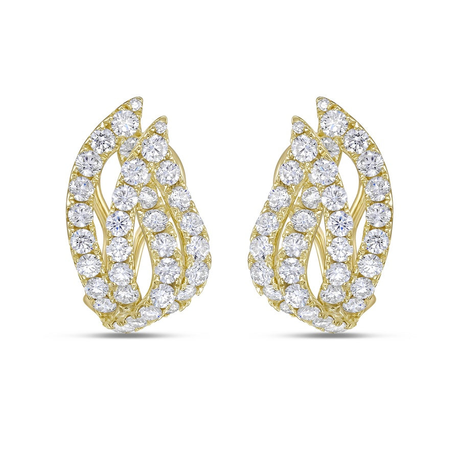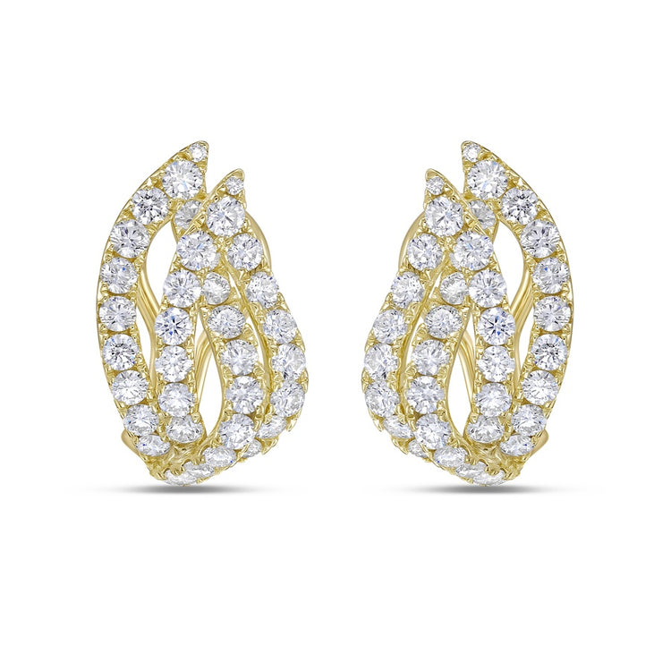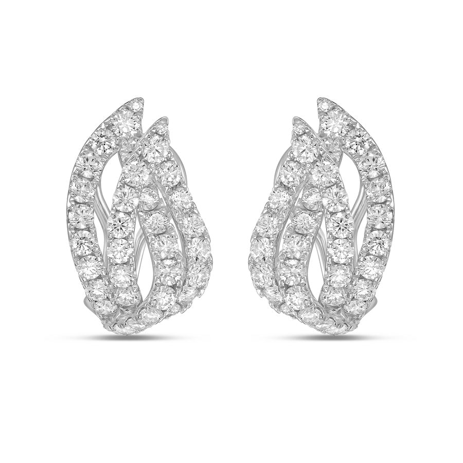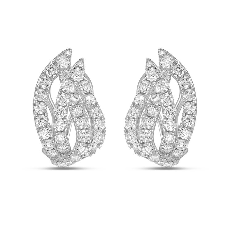 A sophisticated interplay of form and brilliance, these earrings are crafted in 18k white gold and feature intertwining rows of brilliant white diamonds. Designed to lay perfectly along the ear and flow upward, the sculptural silhouette evokes the graceful flicker of a flame, creating a sense of fluid movement and striking elegance.