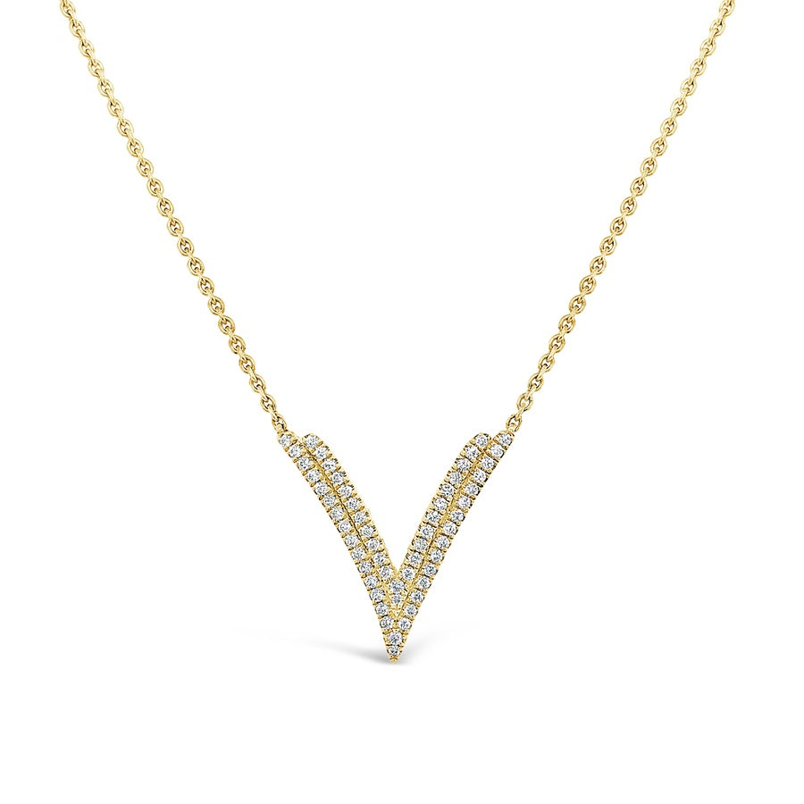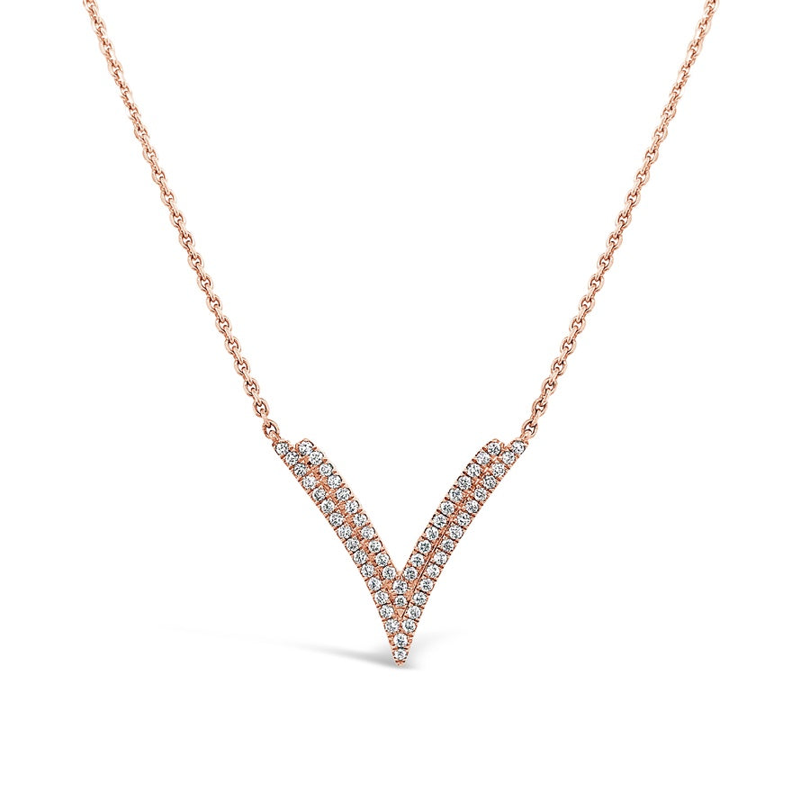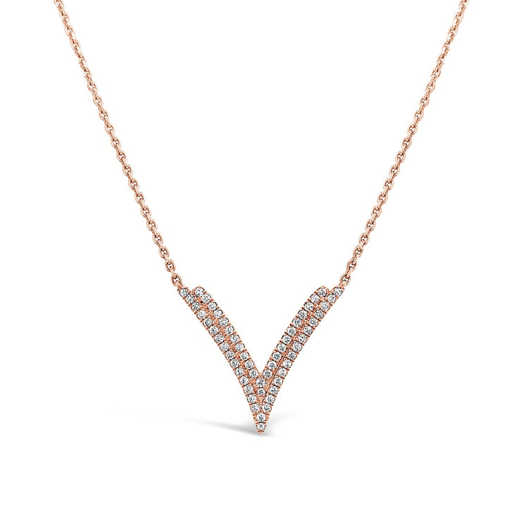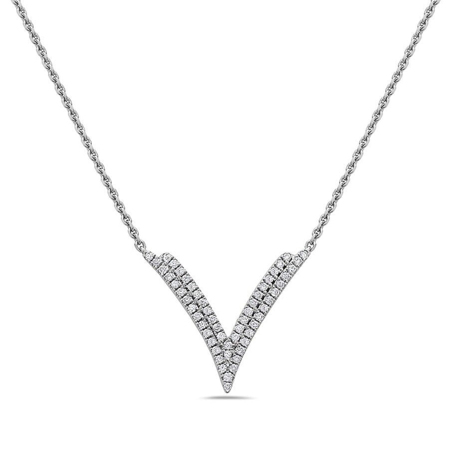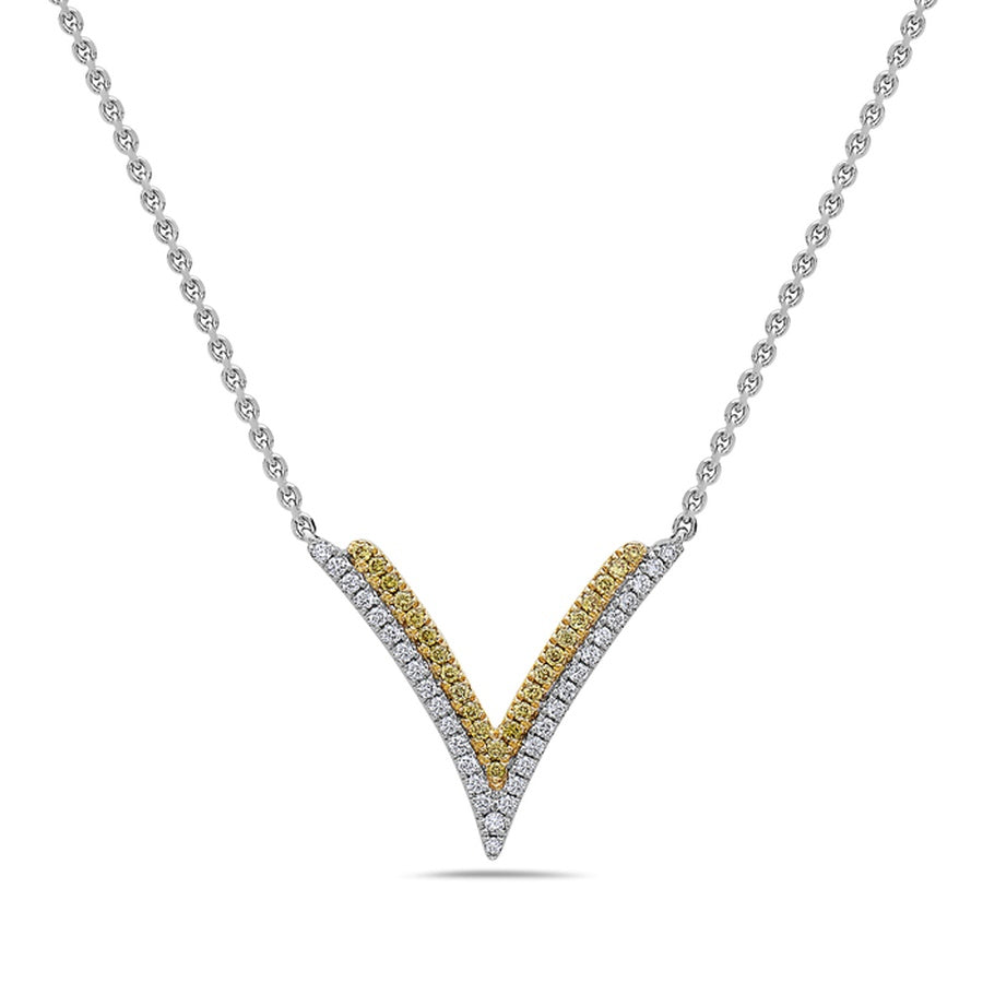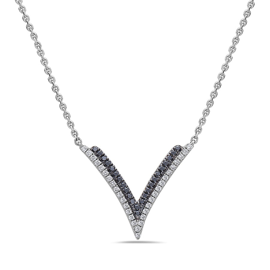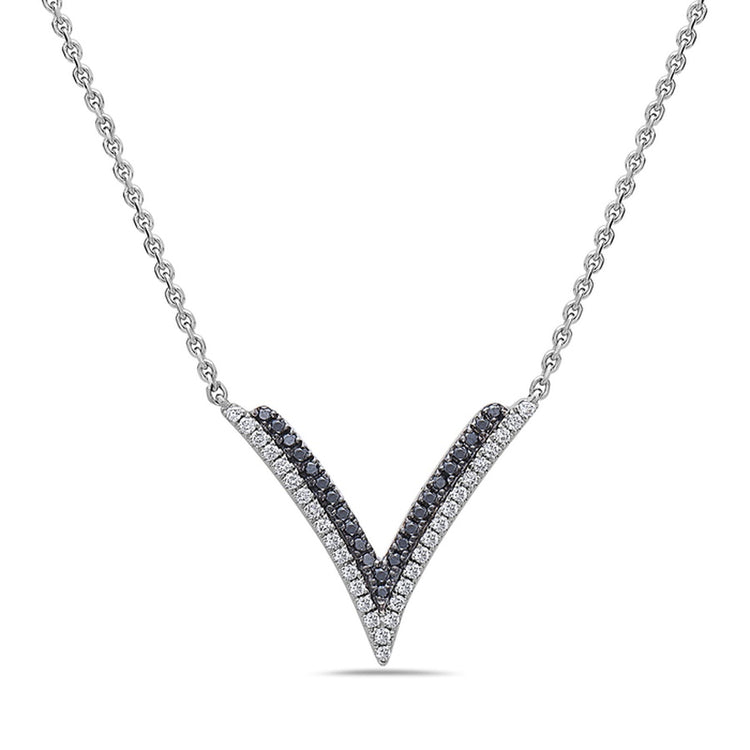 One row of black diamonds and one row of brilliant white diamonds set in 18k white gold converge in a dramatic point, creating a bold and playful statement necklace.