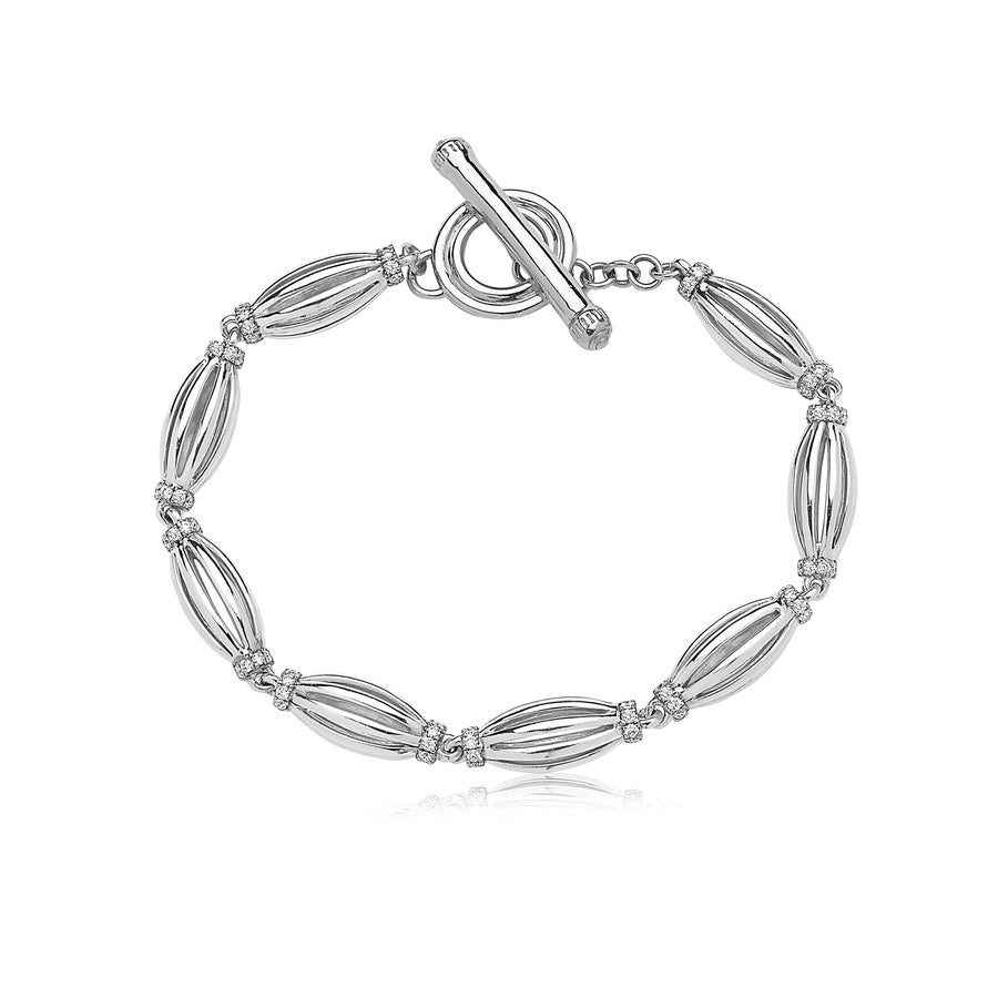 Enhance your elegance with this stunning graduated birdcage bracelet, expertly crafted in luxurious 18k white gold. Accented with delicate lines of pavé diamonds, this design adds subtle sparkle while allowing the warmth of the gold to take center stage.