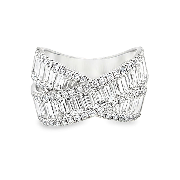 Criss Cross Baguette Cut White Diamond Ring