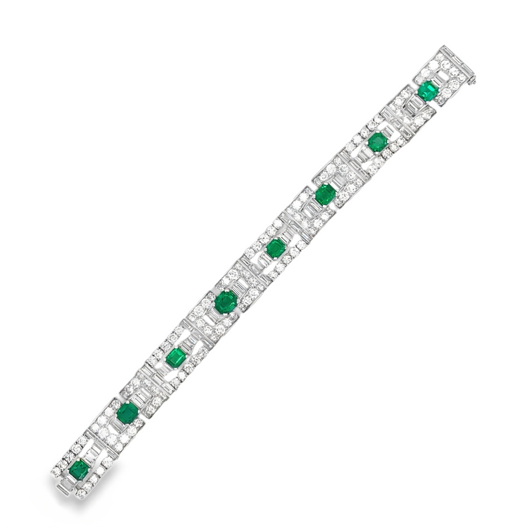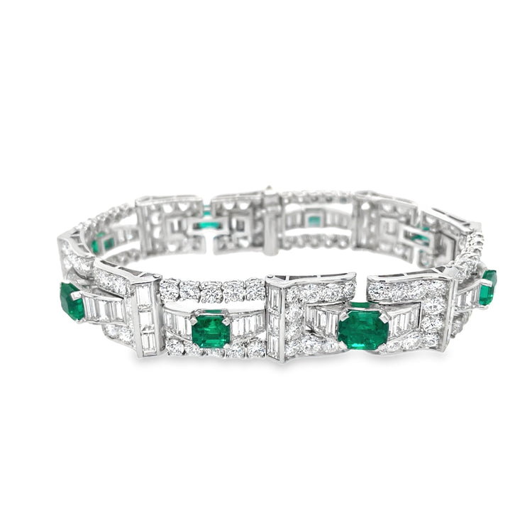Vintage 1970's Diamond and Emerald Art Deco Bracelet