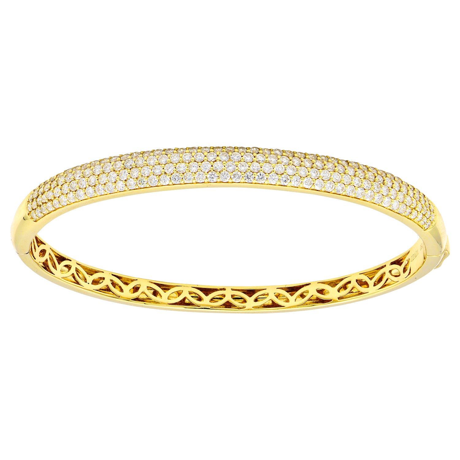The careful arrangement of the numerous diamonds along with the high-quality craftsmanship of the yellow gold setting results in a bracelet that shows your exquisite taste in jewelry. With 172 brilliant round diamonds set in 18KT yellow gold, you are promised to shine from every angle in this bracelet.