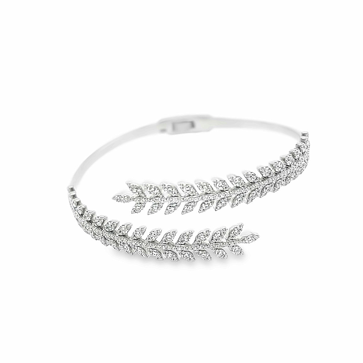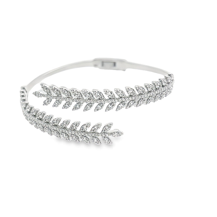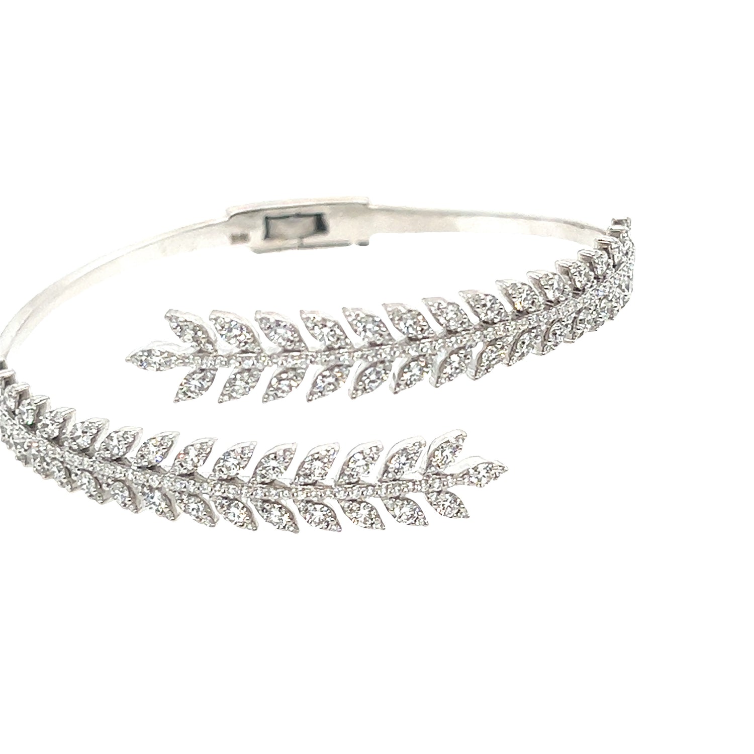 The cuff is designed in the shape of delicate and intricate leaves, creating a botanical-inspired motif. Crafted from 18KT white gold, the cuff provides a sleek and modern backdrop for the brilliant round diamonds. The cuff is embellished with a total of 280 brilliant round diamonds with a combined weight of 3.18 carats.