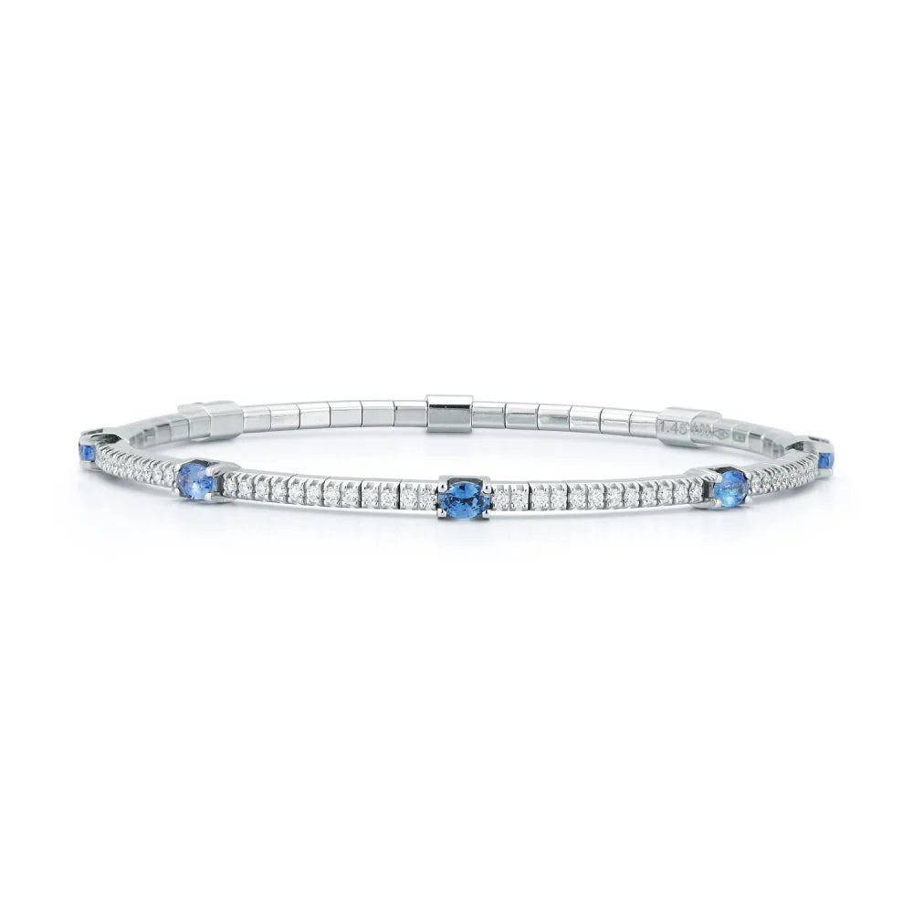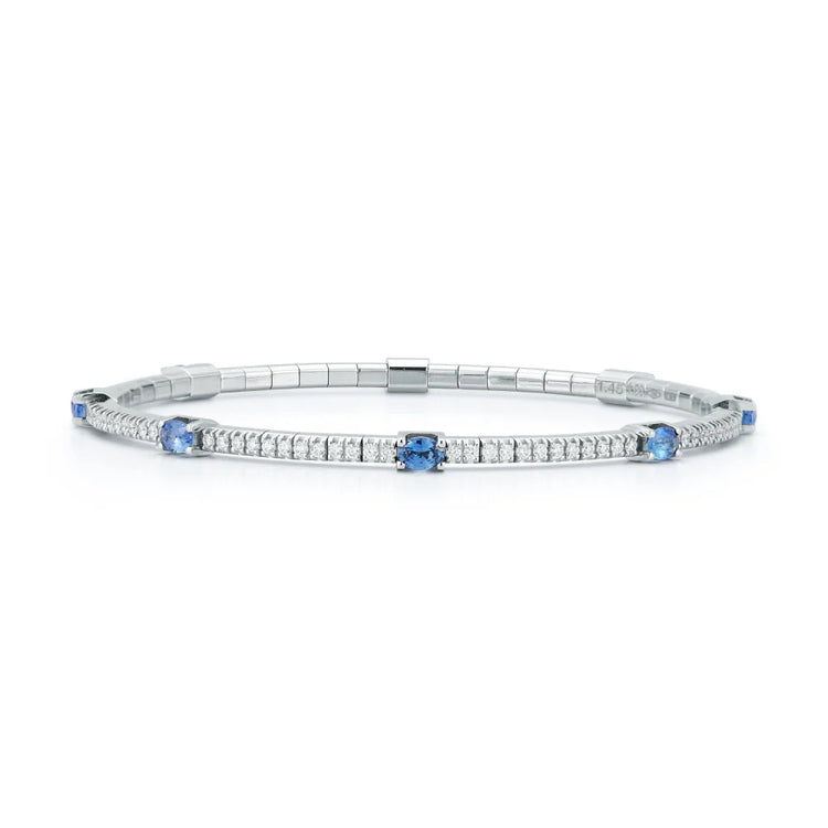 2.45CT Diamond and Oval Blue Sapphire Stretch Bracelet