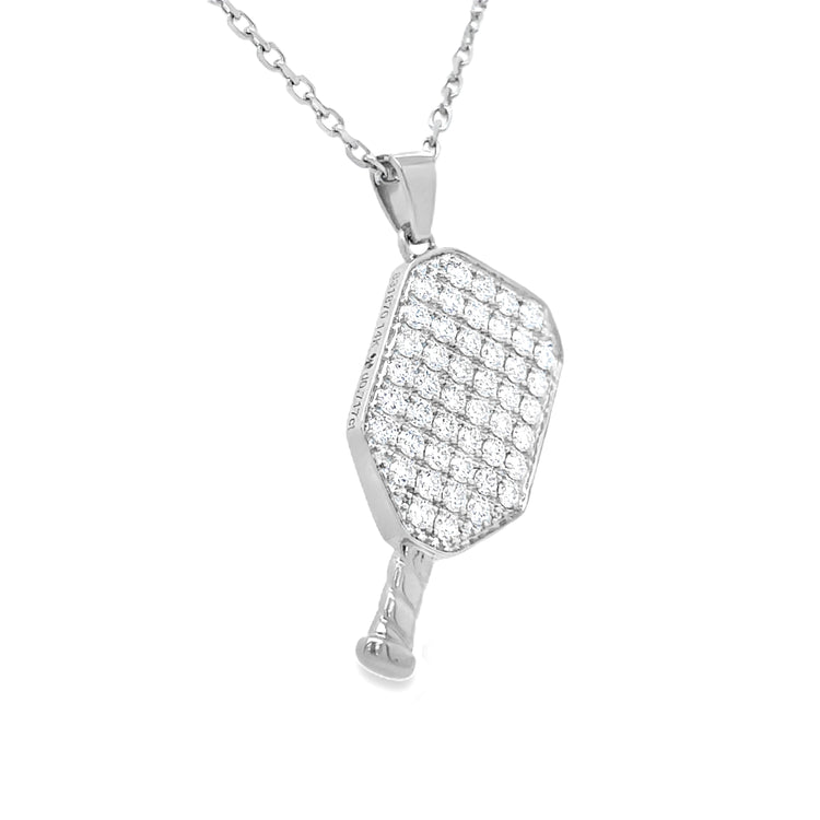 Diamond Pickleball Charm Pendant in White Gold