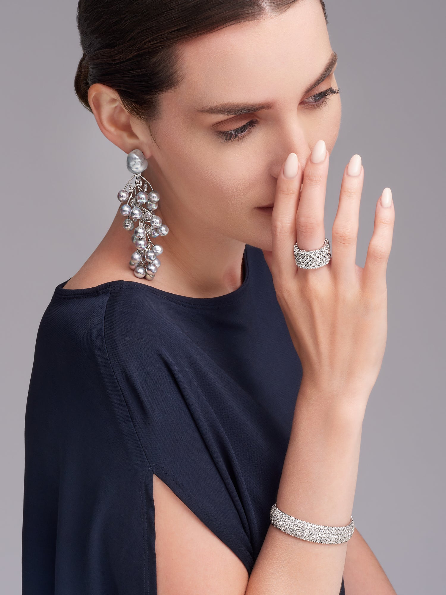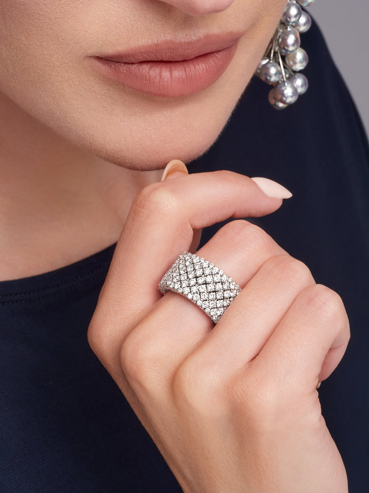 When you’re feeling bold this ring is just what you need to get through the day into the night. Set in white gold, this band offers seven rows of diamonds, weighing over seven carats, that wrap around the finger to boldly proclaim your love of sparkle.