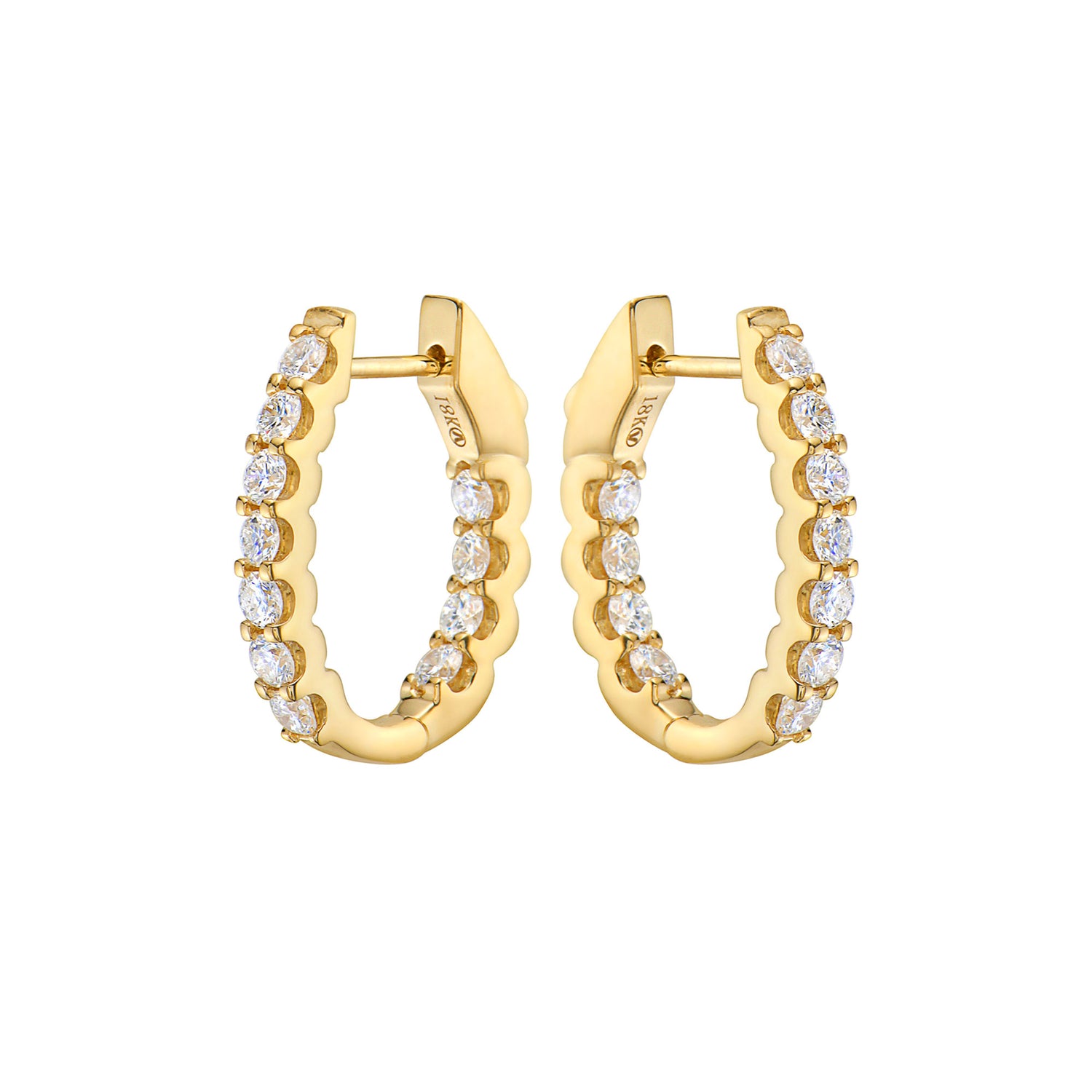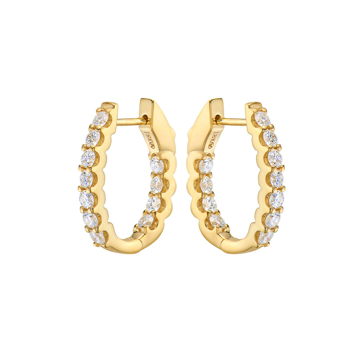 These diamond hoop earrings are so versatile you'll reach for them every day. Round-cut diamonds are set in 18k yellow gold, with beautiful inside-out detail for a look that adds sparkle to an essential style.