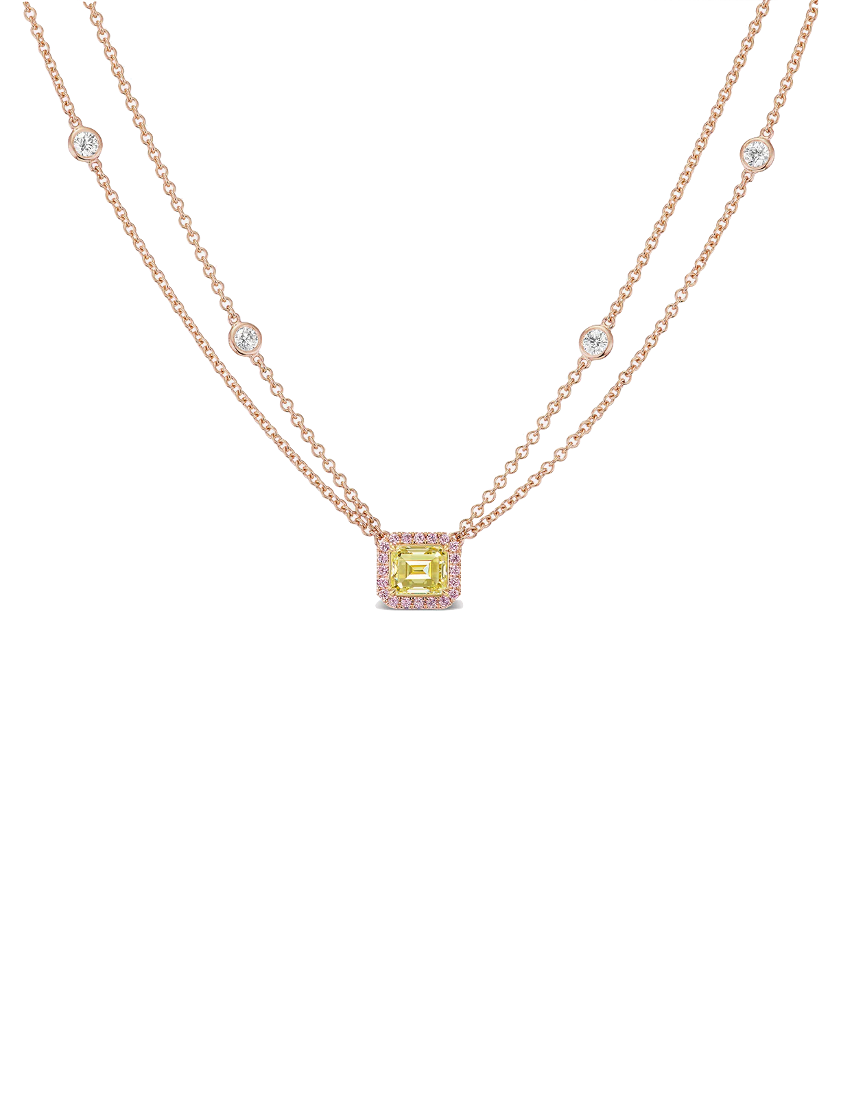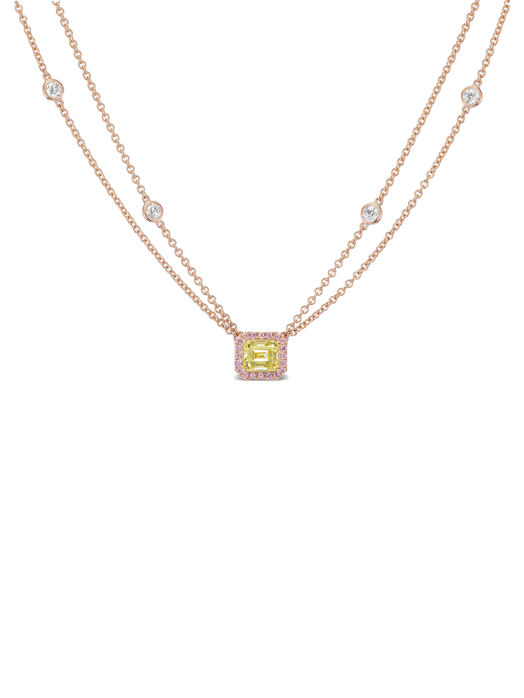 J Fine East West Style Yellow and Pink Diamond Necklace