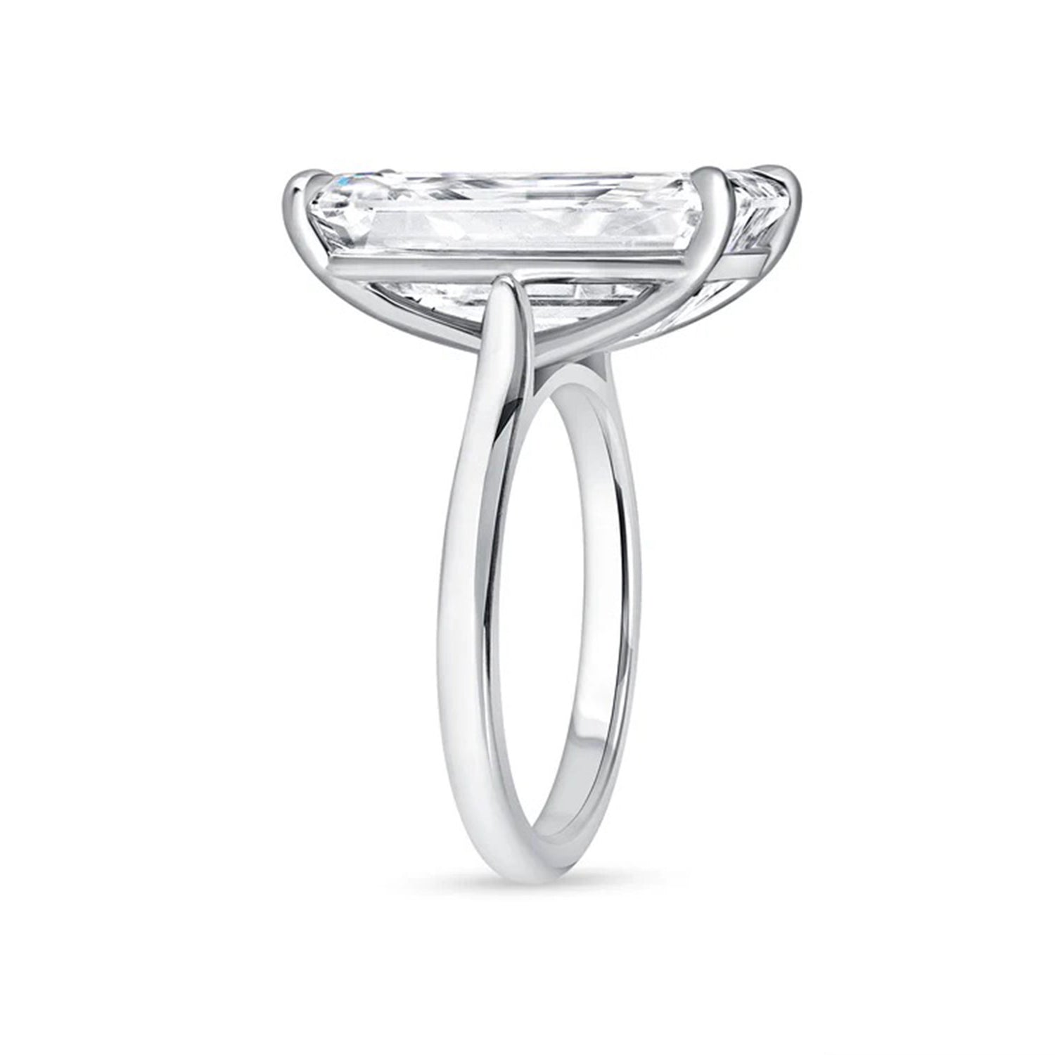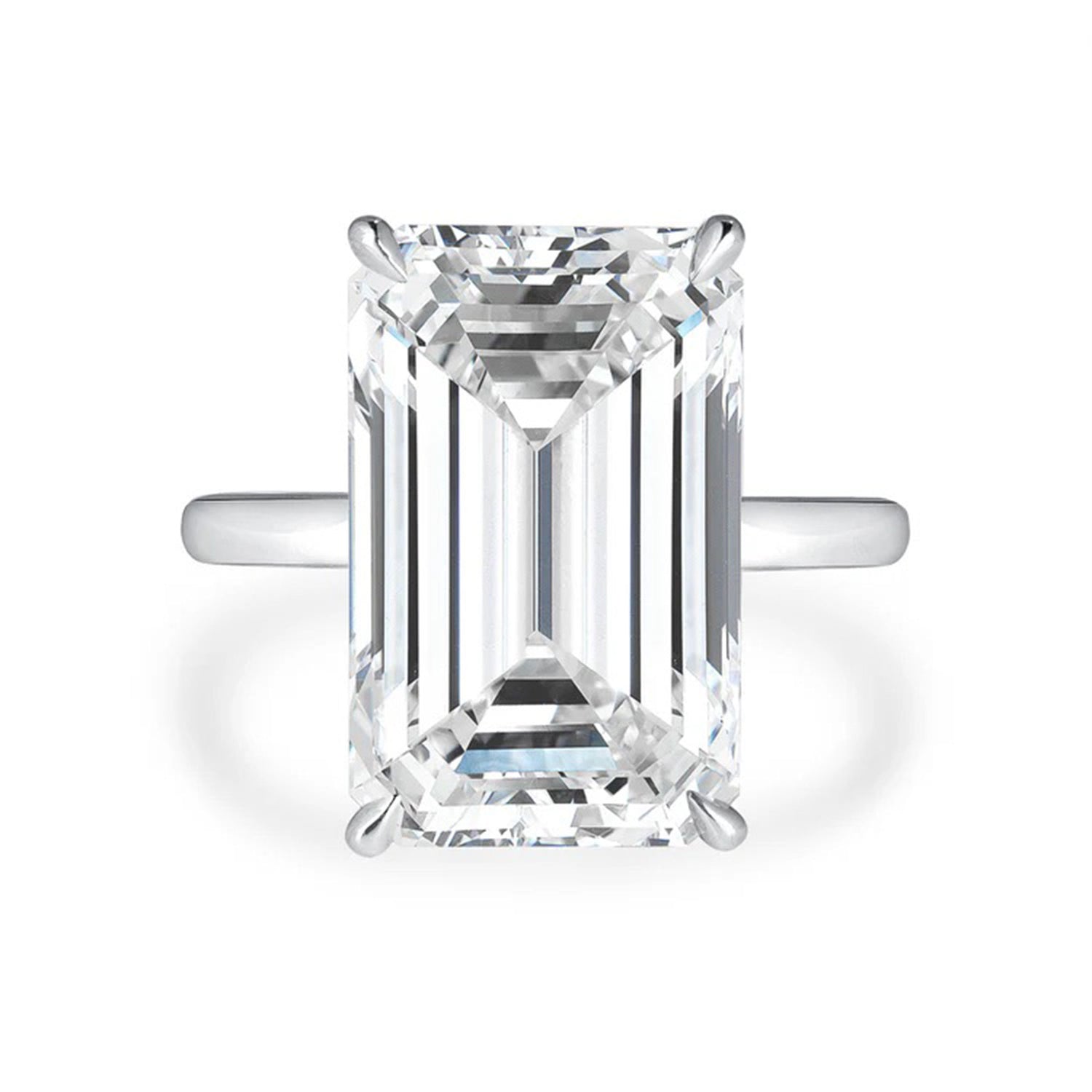 This ring showcases a stunning emerald-cut diamond, exuding elegance and sophistication with every facet. The emerald cut, with its sleek lines and stepped facets, highlights the diamond's clarity and brilliance, creating a mesmerizing display of light and sparkle.
