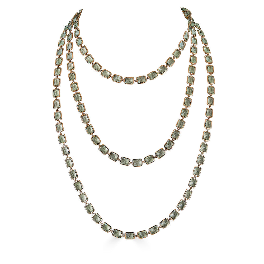 Strands of sparkling grey amethyst, emerald cut and bezel set in 18 karat rose gold make a glamorous statement. Lightweight enough for everyday wear or a dazzling night out, you’ll love this necklace's glowing look.