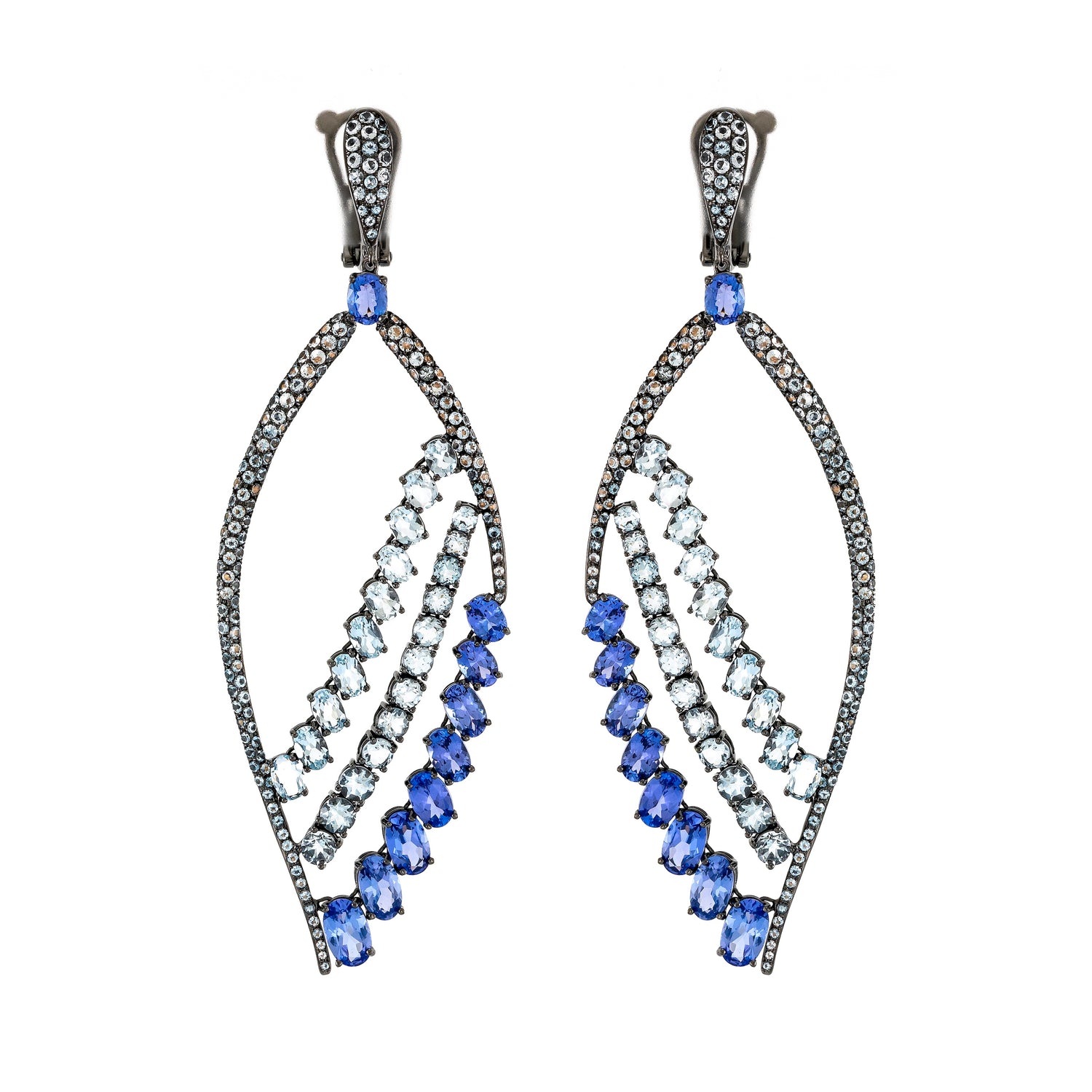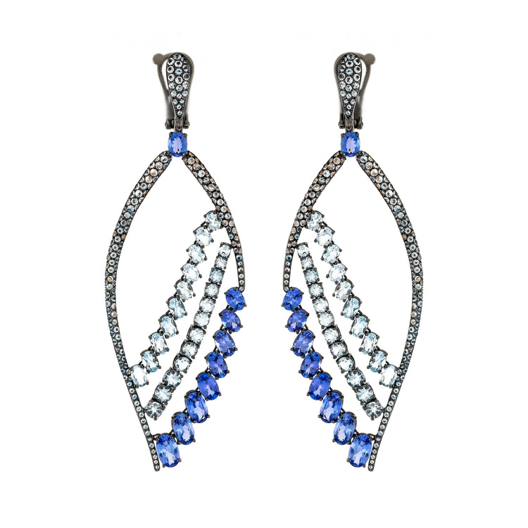 Etho Maria Aquamarine and Tanzanite Tapered Hoop Earrings