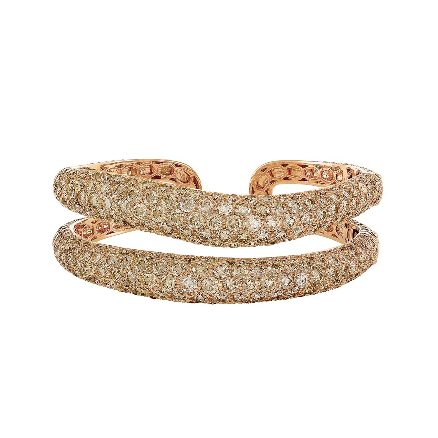 Etho Maria Brown Diamond Two Layer Gemini Snake Style Bracelet from the Gemini collection. This stunning piece features intricate layering of brown diamonds set in luxurious 18K rose gold, embodying a bold yet elegant design. Perfect for adding a touch of sophistication to any outfit.
