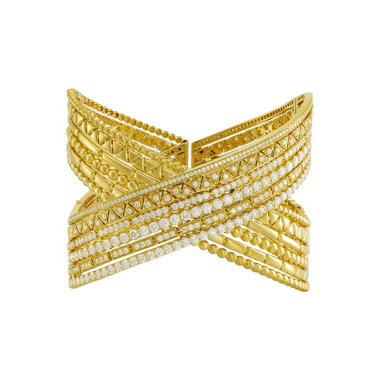 Etho Maria Diamond Reflexion Yellow Gold Crisscross Cuff Bracelet