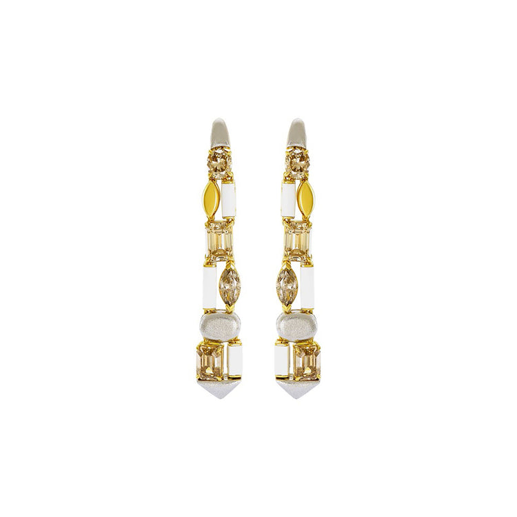 Etho Maria Hand-Carved Ceramic and Brown Diamond Mosaic Hoop Earrings from the Mosaic collection.These elegant hoop earrings feature hand-carved ceramic and radiant brown diamonds, set in 18K yellow gold. A striking combination of modern design and classic sophistication.
