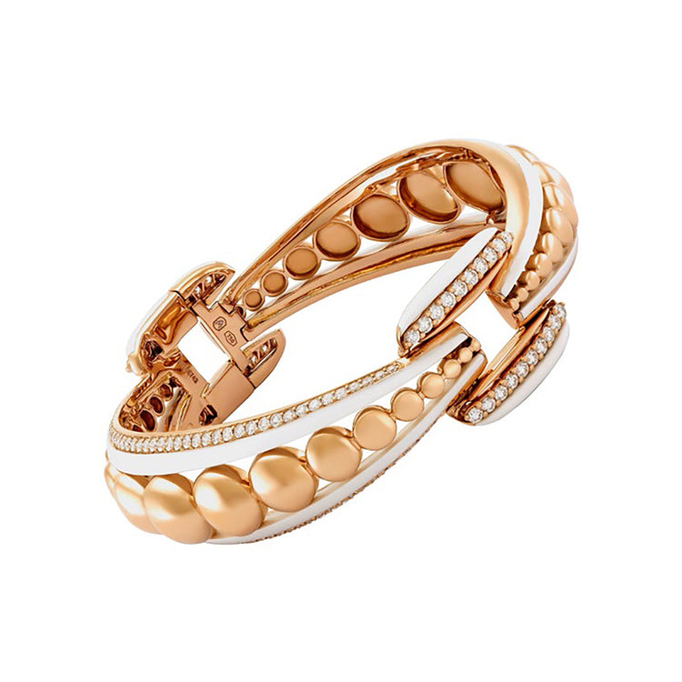 Etho Maria Hand-Carved Ceramic & Diamond Accented Bangle Bracelet from the Cabouchon collection. This stunning bracelet features beautifully crafted ceramic complemented by sparkling diamond accents, all set in luxurious 18K rose gold. Its refined design adds a touch of elegance to any outfit, making it a versatile piece for both everyday wear and special occasions. Elevate your accessory collection with this exquisite bracelet.