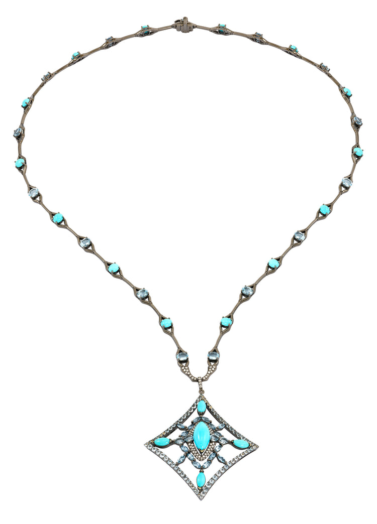 Etho Maria Turquoise and Aquamarine Necklace with Pendant