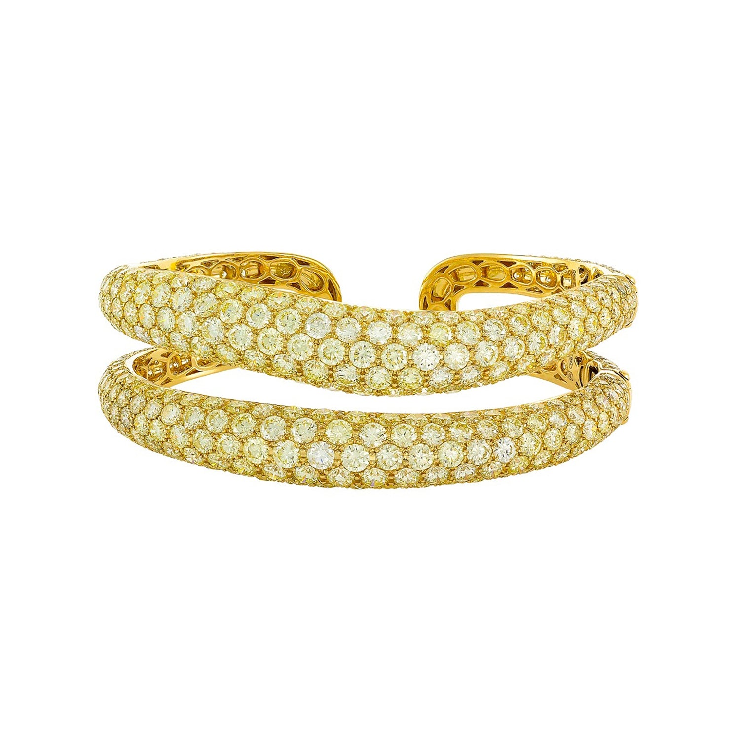 This captivating bracelet features vibrant yellow diamonds set in a stylish snake-inspired design. Crafted in 18K yellow gold, it combines contemporary flair with timeless elegance for a stunning statement piece.