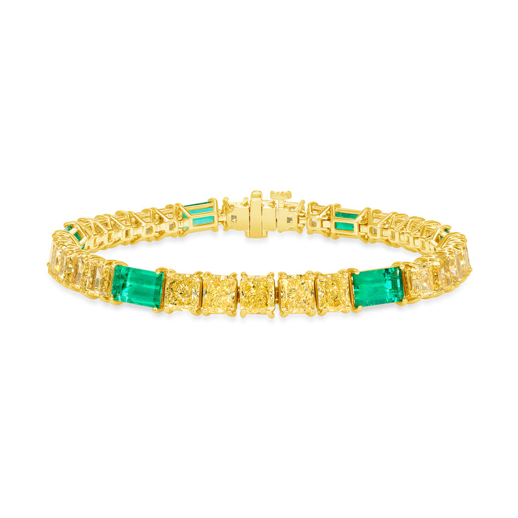 Fancy Yellow Diamond and Emerald Bracelet