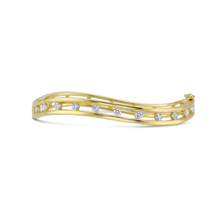 Charles Krypell Floating Diamond Curved Bracelet in Yellow Gold