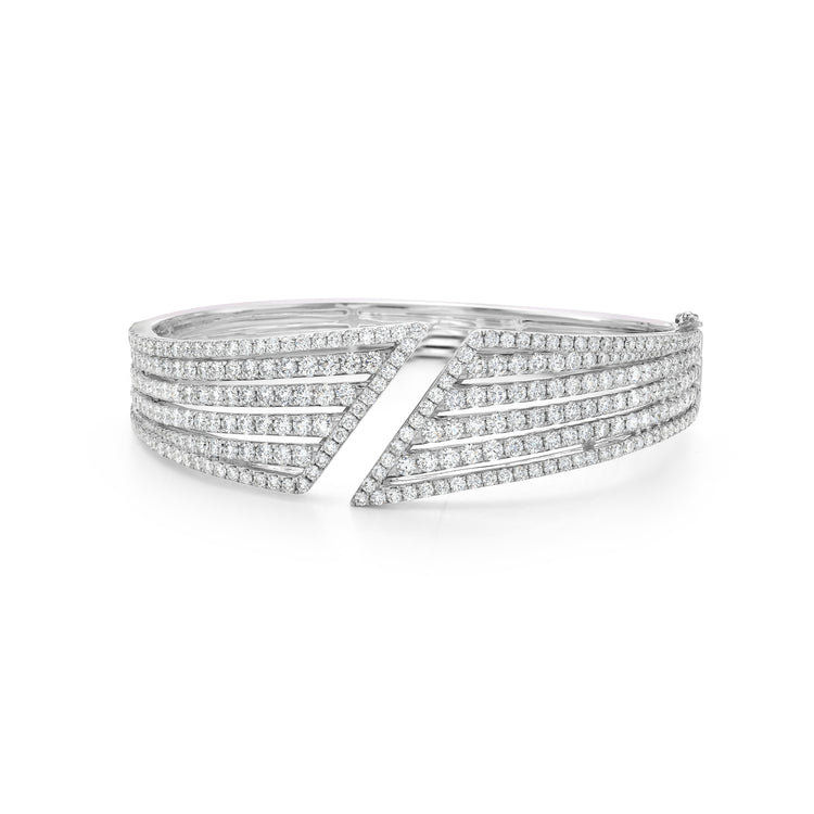This stunning bracelet showcases a captivating layered design, adorned with sparkling round diamonds. Crafted in 18K white gold, this bracelet exudes sophistication giving your wrist a perfect makeover.