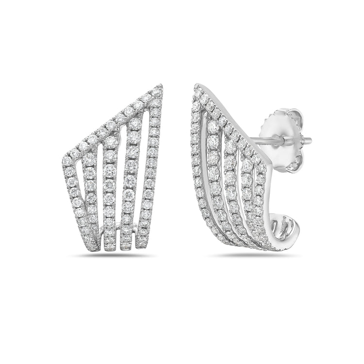 These captivating stud earrings showcase a modern and artistic design, adorned with sparkling round diamonds. Crafted in 18K white gold, these earrings exude sophistication and make a bold statement.