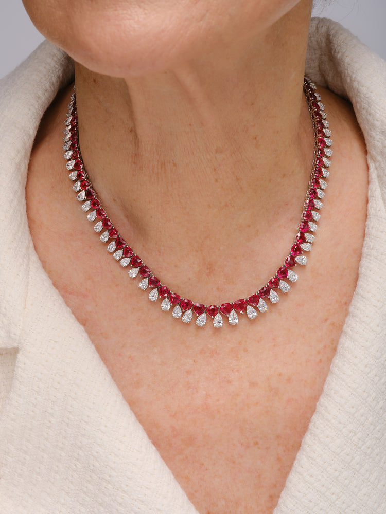 Hear Shaped Ruby onand Pear Shaped Diamond Necklace